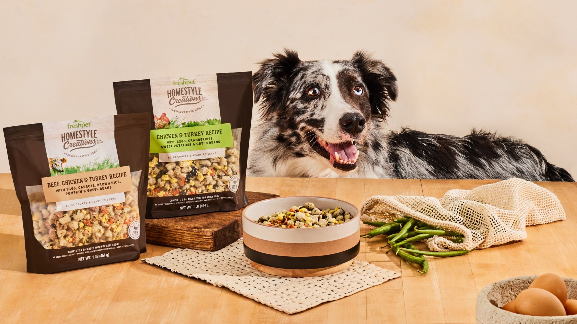 Homestyle Creations® uses the highest quality proteins, fruits, veggies, and scrambled eggs to create a complete and balanced meal that tastes like it came straight from your kitchen to your dog’s bowl.